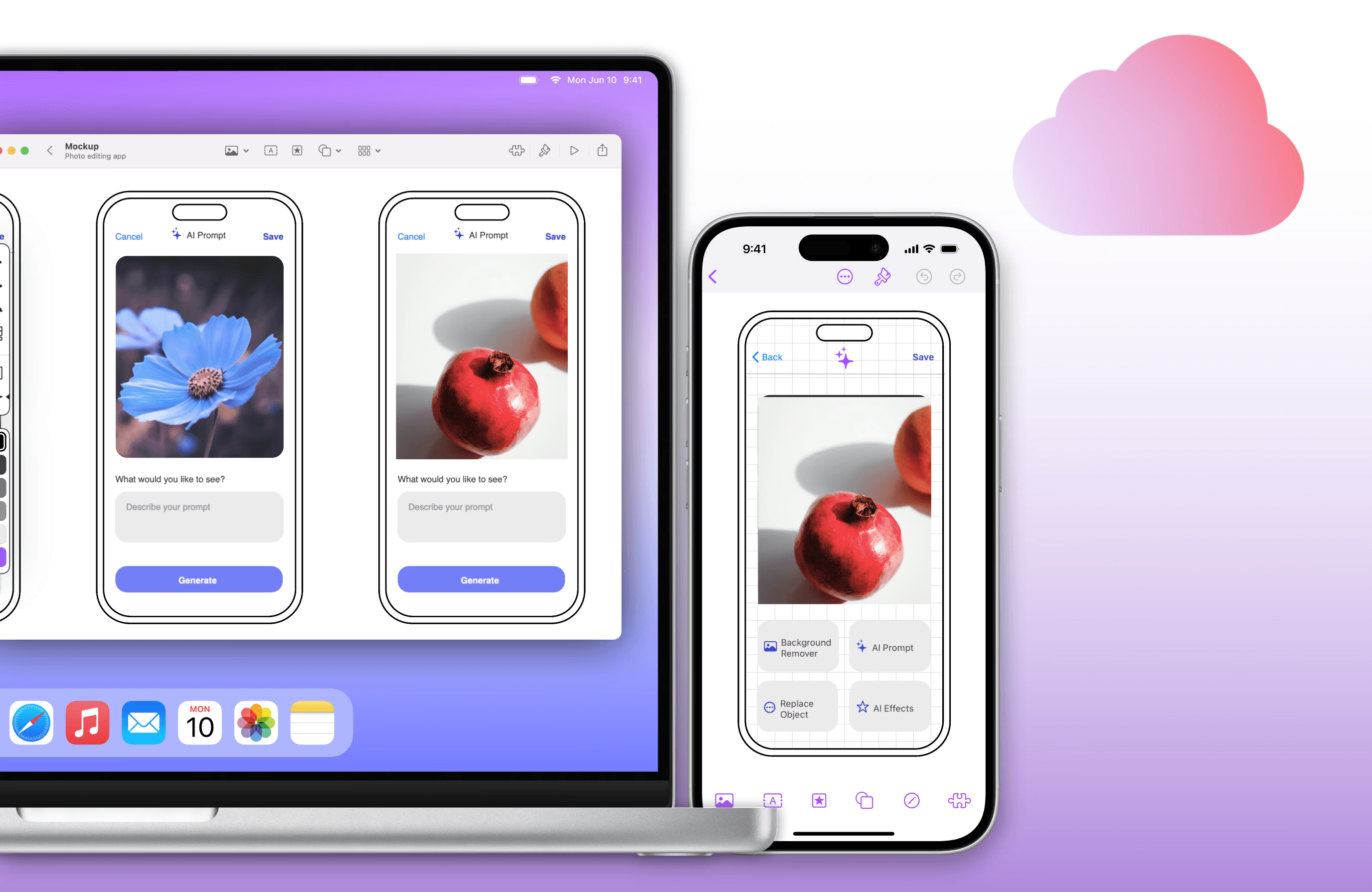 With iCloud Sync, your projects stay up-to-date across all your devices. Detail on iPad with Apple Pencil & magic Keyboard, make quick edits on iPhone, or finish off on Mac—a unified design experience on every device.