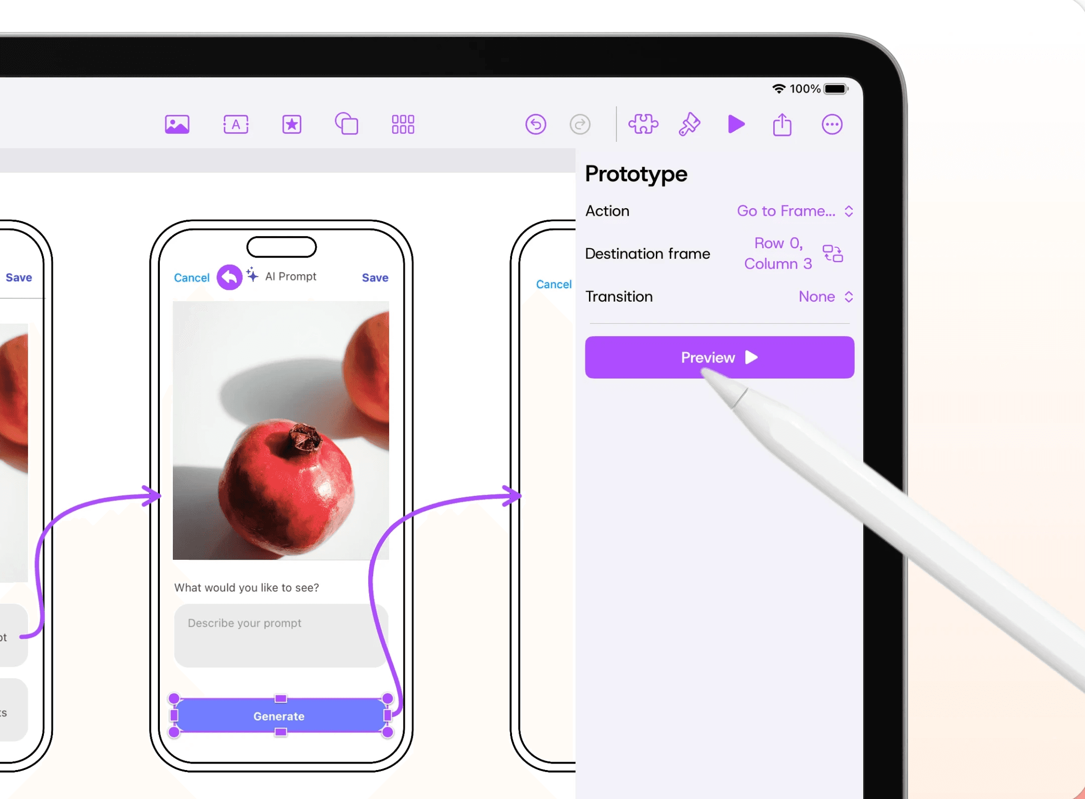 Connect frames to create interactive flows with smooth navigation and seamless transitions.